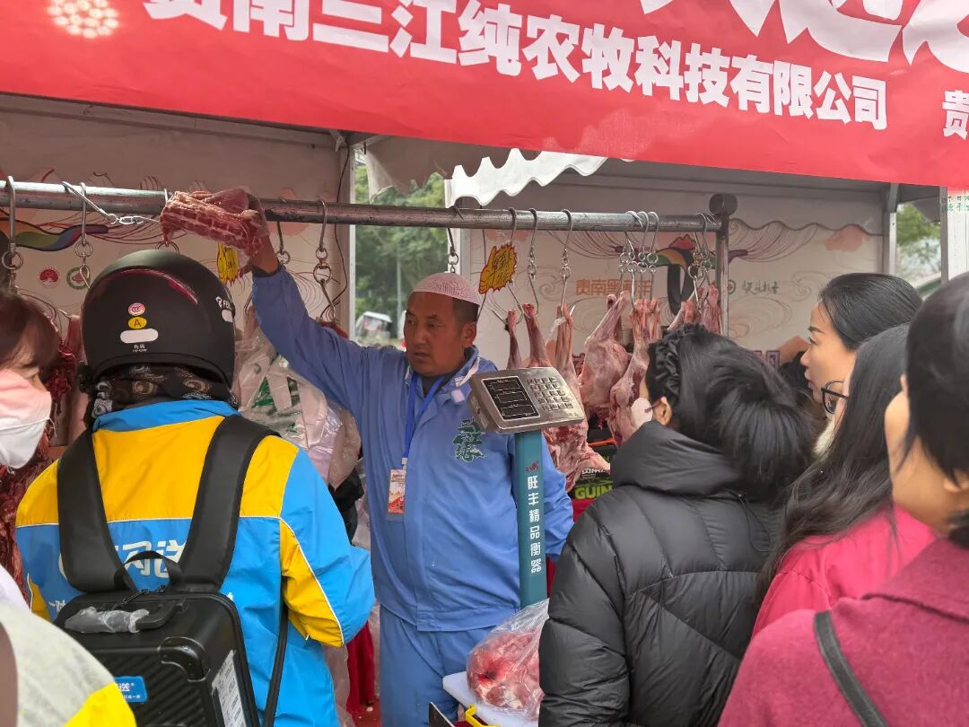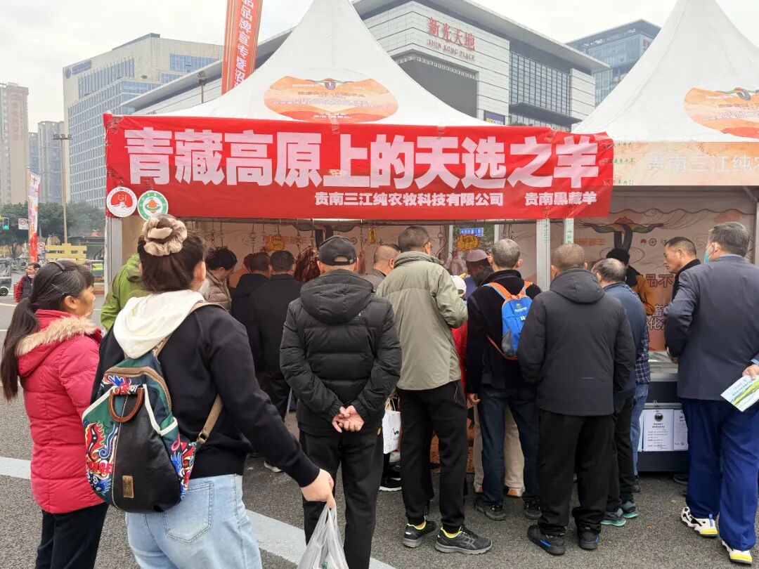 现场,浓浓的羊香扑面而来。展销区中央有几口浓香四溢的铜锅,里面熬煮的正是来自贵南的特色品种——荣获国内与欧盟双重有机认证的“高原黑珍珠”黑藏羊,这种羊肉肉质鲜嫩,集四项“国字号”荣誉于一身。市民游客纷纷驻足排队品尝这“远道而来”的特色羊肉。