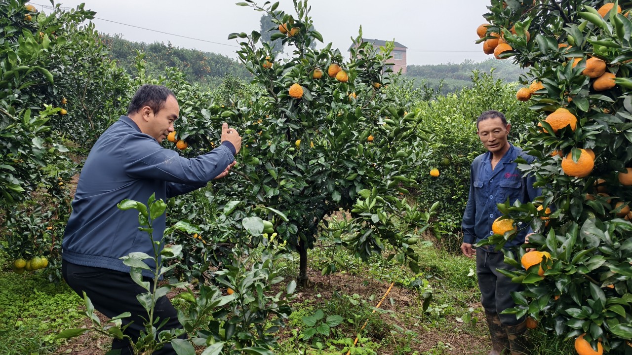 走进12组村民杨婆婆的果园,金黄饱满的蜜柑挂满枝头,果香四溢。罗泽半俯身子钻进果林,一套“看色泽、捏硬度、尝甜度”的“选果三部曲”行云流水。了解品质后,他紧紧握住杨婆婆的手,斩钉截铁地承诺:“您放心,这么好的果子我一定帮您卖出去!”
