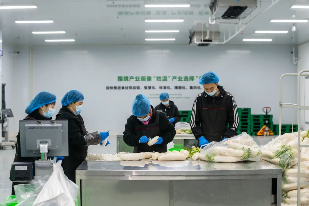 隆科农贸智慧化食材分拣中心不仅按照全流程标准化管控,也通过智慧系统让每份食材都拥有透明“身份证”。