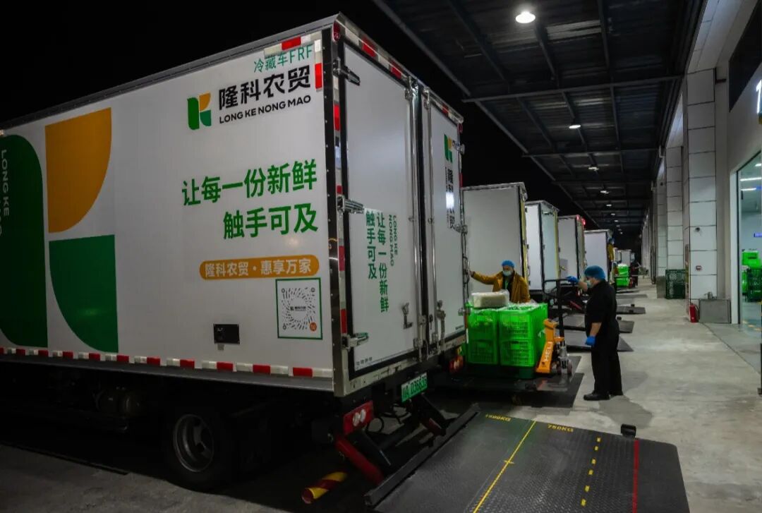 与此同时,智慧供应链管理系统的后台数据正不断跃动更新。运输路线如毛细血管般星罗棋布,精准延伸。在隆科农贸智慧化食材分拣中心的监控大屏前,现场负责人李仲杰目光专注,40台冷链车的实时轨迹与车厢温度一目了然,一切尽在掌握。