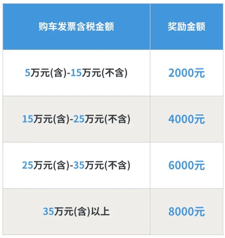 活动期间,在温江区参与活动的汽车销售企业购置非营运乘用新车且完成登记上牌的个人消费者,发放购新车消费奖励,具体标准为: