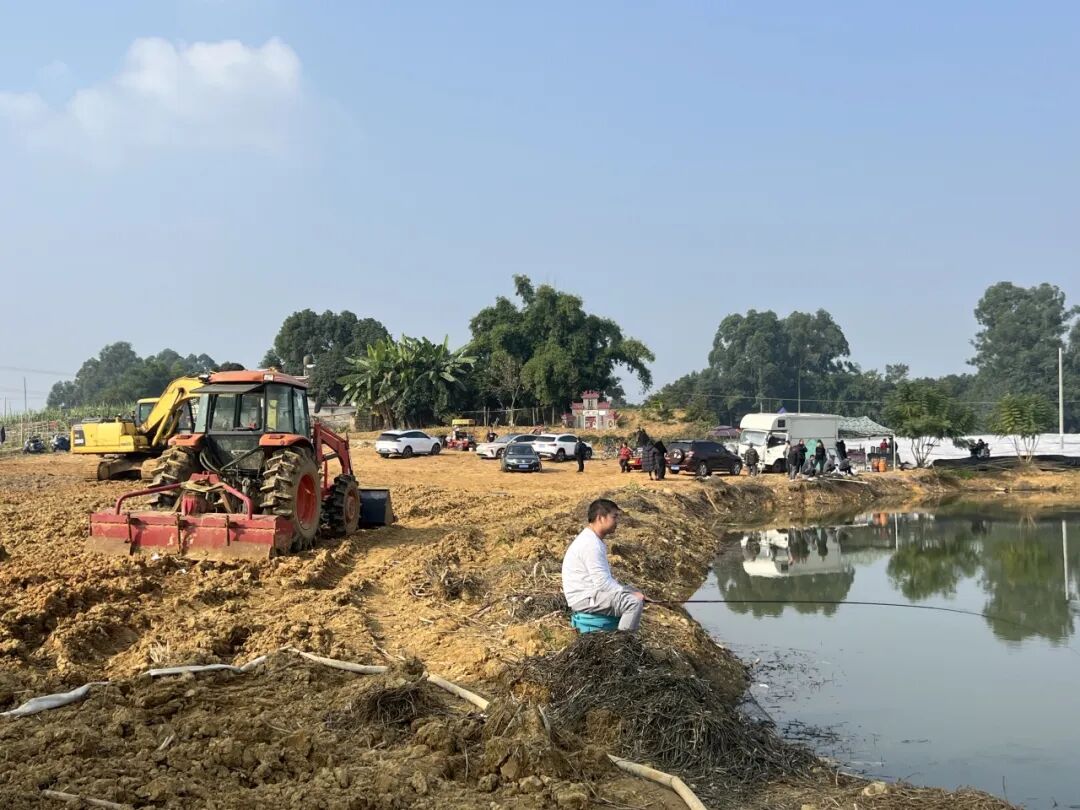 刚演完这场戏,还没走出鱼塘,一位大哥上前:“老板我加下你微信嘛,我们可以合作嘛,你看那片空地来的人可以坐着晒太阳、吃烧烤,我负责提供租借帐篷、桌椅。”