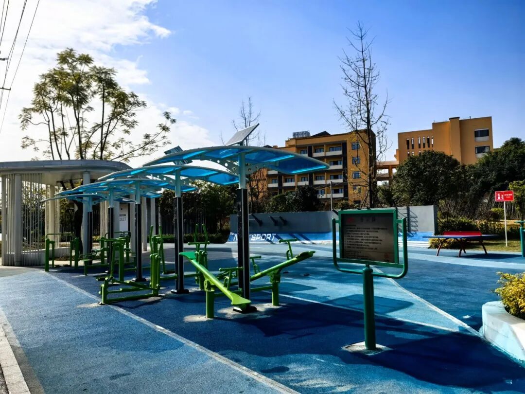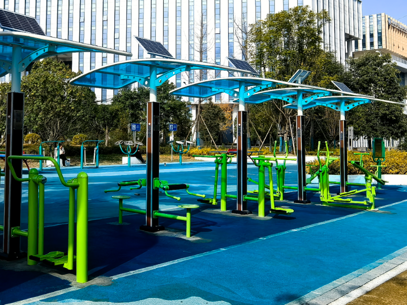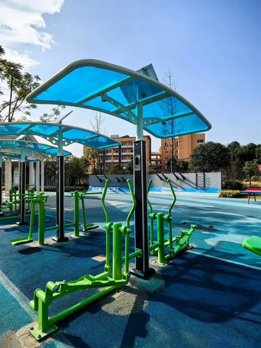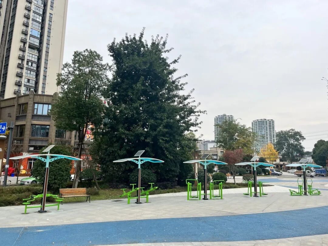 崭新的太空漫步机、钟摆器、椭圆机、腰部按摩器、跷跷板等设施一应俱全,满足了不同年龄段居民的锻炼需求。太阳能供能的计数表盘,让运动者对自己的锻炼时长、次数和预估热量消耗一目了然,让健身变得更科学;采用环保塑胶铺设的地面,具有良好的冲击吸收性,呵护老人和儿童的安全;新增的自带雨棚设计,让健身活动变得风雨无阻,真正实现了“随到随练”,大幅提升了设施的全天候使用率。