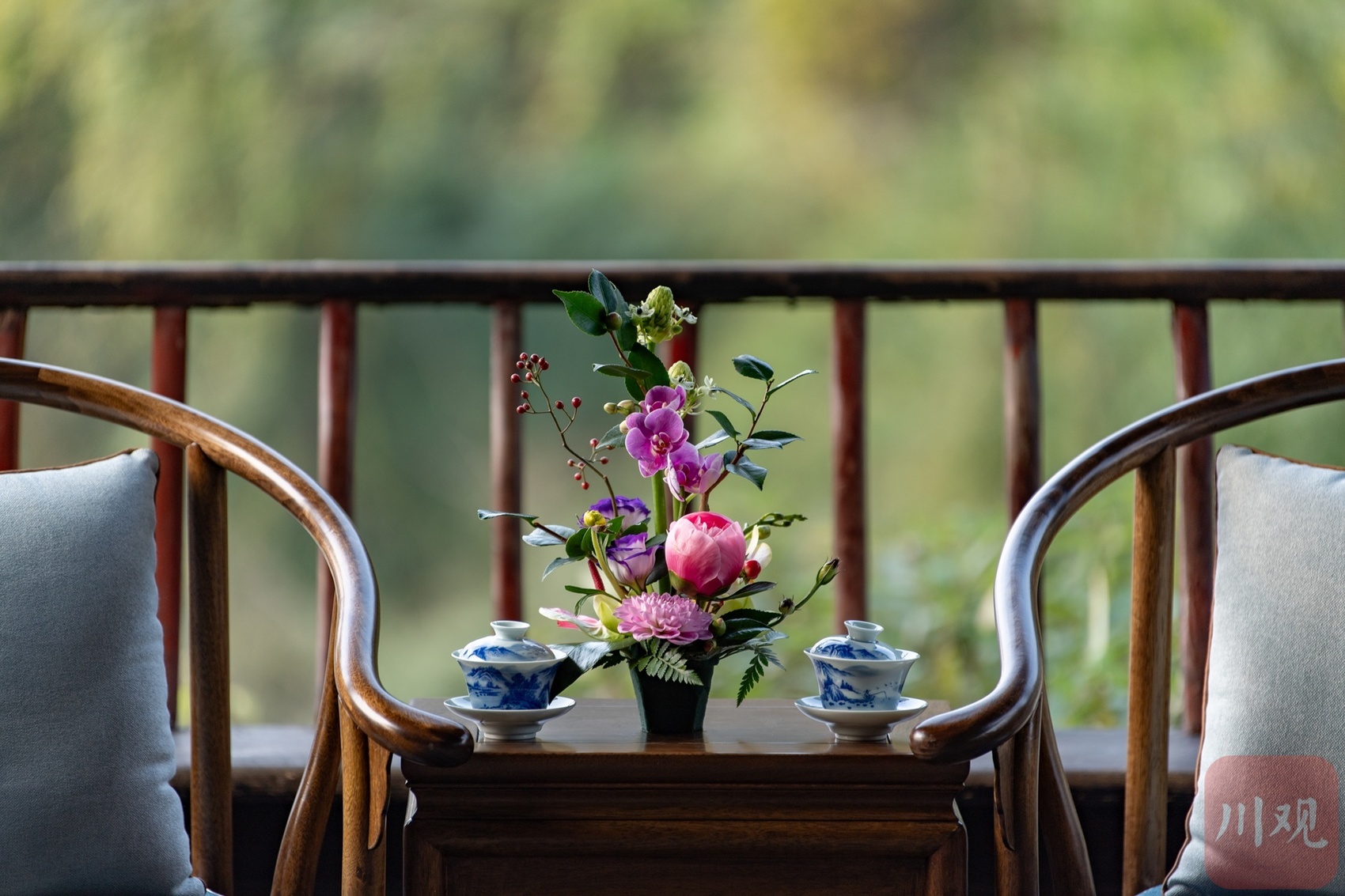 怀古亭里,盆景和盖碗茶,透着浓浓的四川味道。 川观新闻记者 赵明 摄