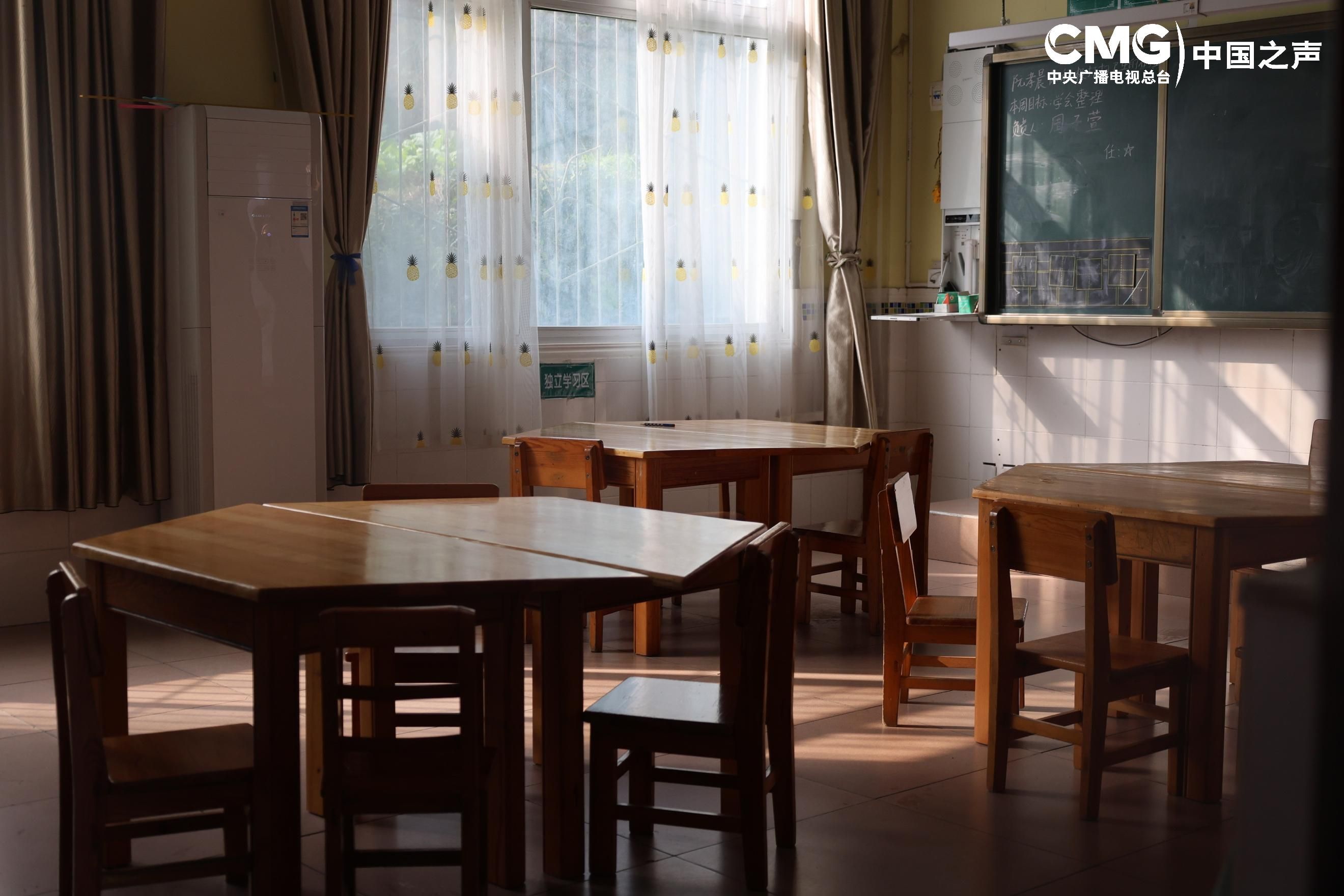“有一个孩子,他感统失调比较严重,没有地方接收,我们接收了。他刚来的时候,三步梯都上不去,得手牵着他才上得去。”张平原说,一个学期后,孩子“可以手揣在裤包里面下楼梯了”。
