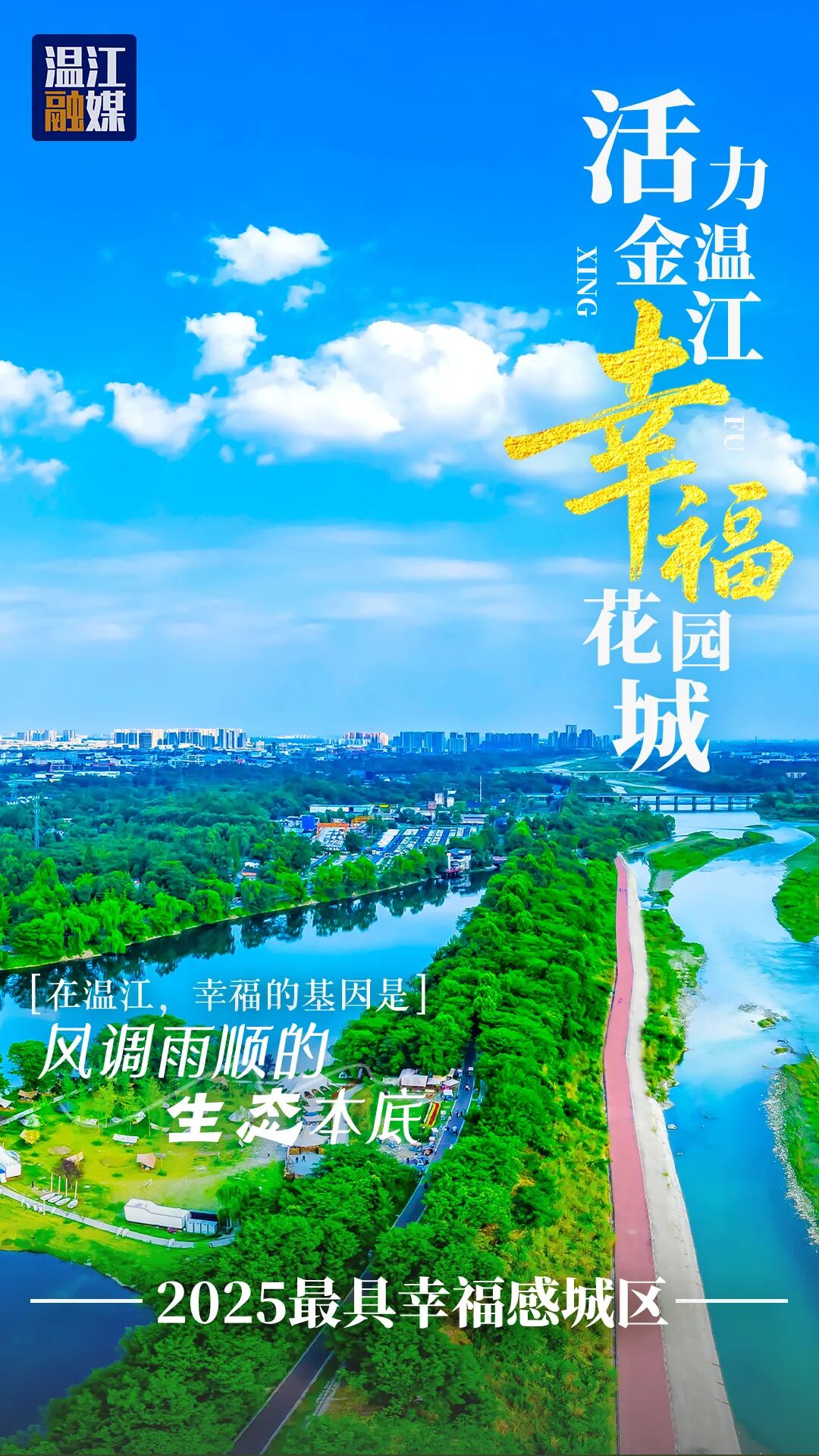 12月9日,“2025最具幸福感城市”系列榜单揭晓,成都市温江区获评“2025最具幸福感城区”,这也是温江第六次登上“幸福榜单”。
