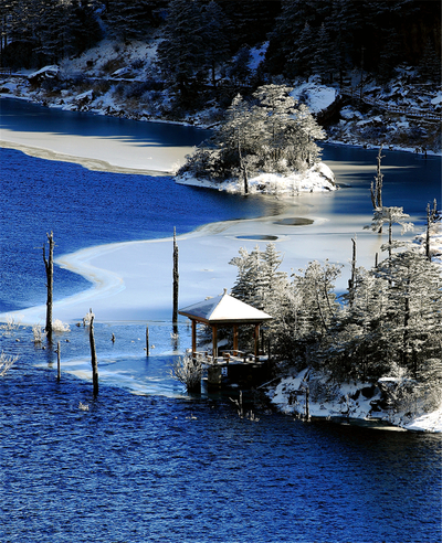 休闲治愈派,“雪山温泉”就是你无法抗拒的暖冬意境。这条线路的打卡点很集中,只需要从西昌出发2小时车程直奔螺髻山景区。冬日的螺髻山就是童话里的冰雪王国,皑皑白雪衬托下,天空的澄澈、湖水的蔚蓝、冰瀑的晶莹、松针的苍翠和阳光的璀璨都显得格外动人,让人感觉自己仿佛置身梦幻当中。赏罢山间雪景,走进凉山手工艺活态馆,那些色彩浓烈的非遗文创和暖融融的咖啡香一下子就能将你从仙境拉回人间。看一看绣娘们现场飞针走线,再选一件小饰品作纪念,就可以下山去泡温泉。这里要敲敲小黑板了,螺髻山的温泉可不是那种常见的小汤池,而是飞流直下的瀑布。没错,就是世界最大的温泉瀑布——螺髻·九十九里。青山之中,温泉水自悬崖倾泻而下,热气蒸腾、云雾缭绕。泡在天然形成的回水凼中,感受小股瀑布冲在肩背处的“按摩”,那是怎样一种舒服惬意?