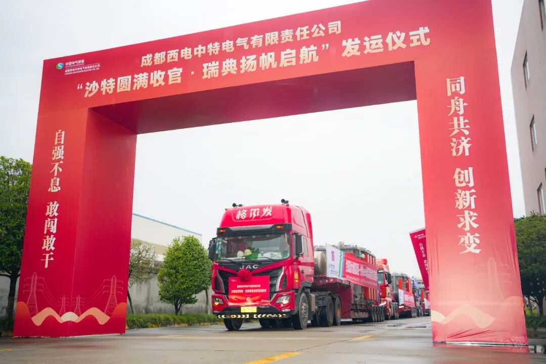 研发工作于2022年启动的ZHSSPT-55440/33绿氢用变流变压器,源自西电中特承接的沙特NEOM未来城电解水制氢项目订单。前不久,该笔订单最后一批变压器产品完成生产,发往项目现场,至此,项目量身定制的55台绿氢用变流变压器产品全部交付。