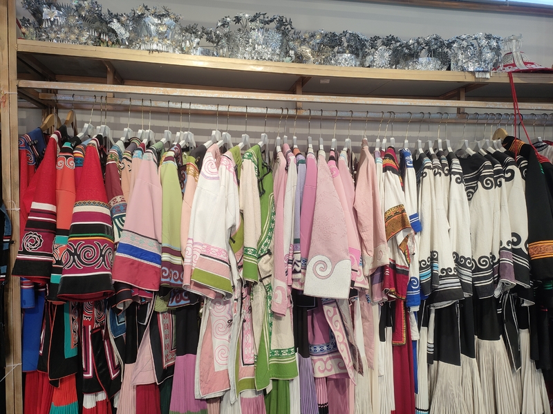 张显伟夫妇的旅拍店里,旅拍服装琳琅满目。