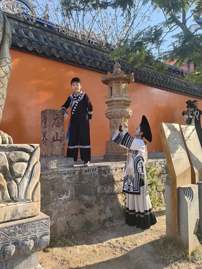 早上八点整,阳光漫过薄雾,西昌市海南街道大石板古村在晨光中醒来。村中的“初兮”旅拍店准时开门,店主张显伟和刘永凤夫妇开始了一天的忙碌。