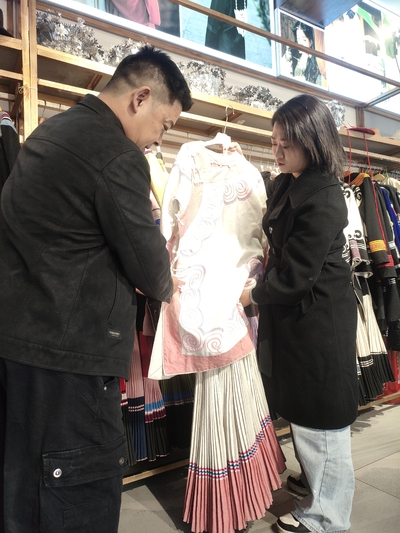 他们将超市空间巧妙分区,一半继续维持日常零售,另一半则布置成古风盎然的化妆间、选片区和服饰陈列区。定价从199元到399元不等的旅拍套餐,精准契合了游客“打卡留念”的需求。生意最火爆时,他们需要聘请化妆师、摄影师、保洁20余人,一天接待游客40多人。
