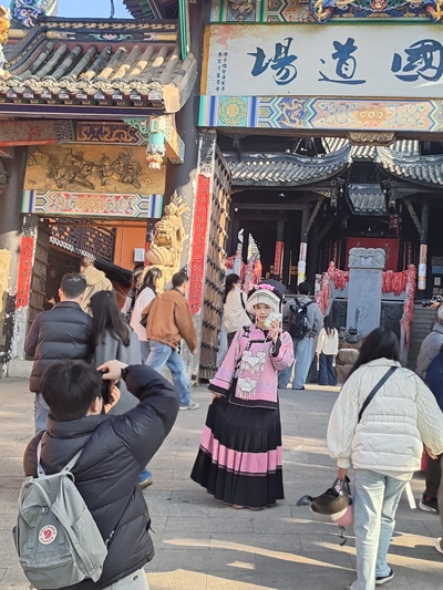 机遇总是青睐有准备的人。2022年底,随着旅游市场回暖,大石板古村迎来客流高峰。他们的超市生意火爆,这“第一桶金”让他们在古村站稳了脚跟,也让他们亲历了古村一天天“活”起来的过程——红墙青瓦再现古韵,茶马文化与渔家风情悄然复苏。