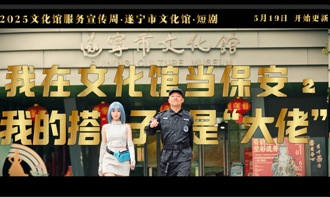 这部由遂宁市文化馆工作人员亲自上阵、自编自演的短剧,情节并不复杂:一位文化馆保安与一位“AI大佬”搭档,在充满烟火气的日常工作中,将文化馆的职能、活动与服务生动“翻译”给了观众。