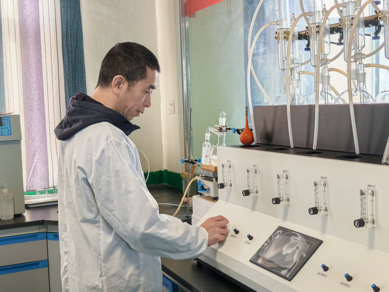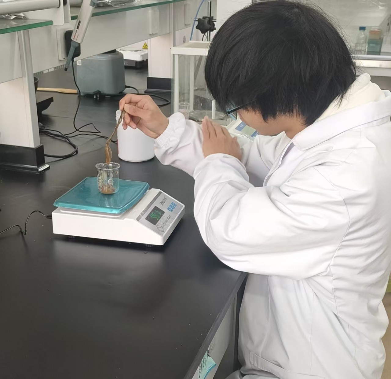 成都大学学生刘善超正在做食品检测。受访者供图