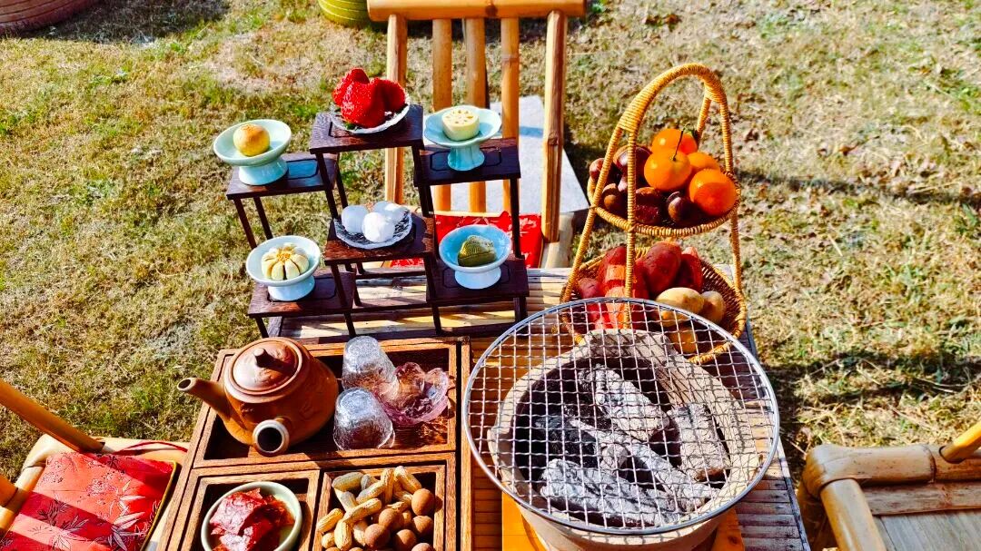 冉先生笑着说,除了采摘,草莓部落还打造了丰富多彩的体验项目,“摘完草莓后,再烤着红薯煮着茶,一整天很惬意。”