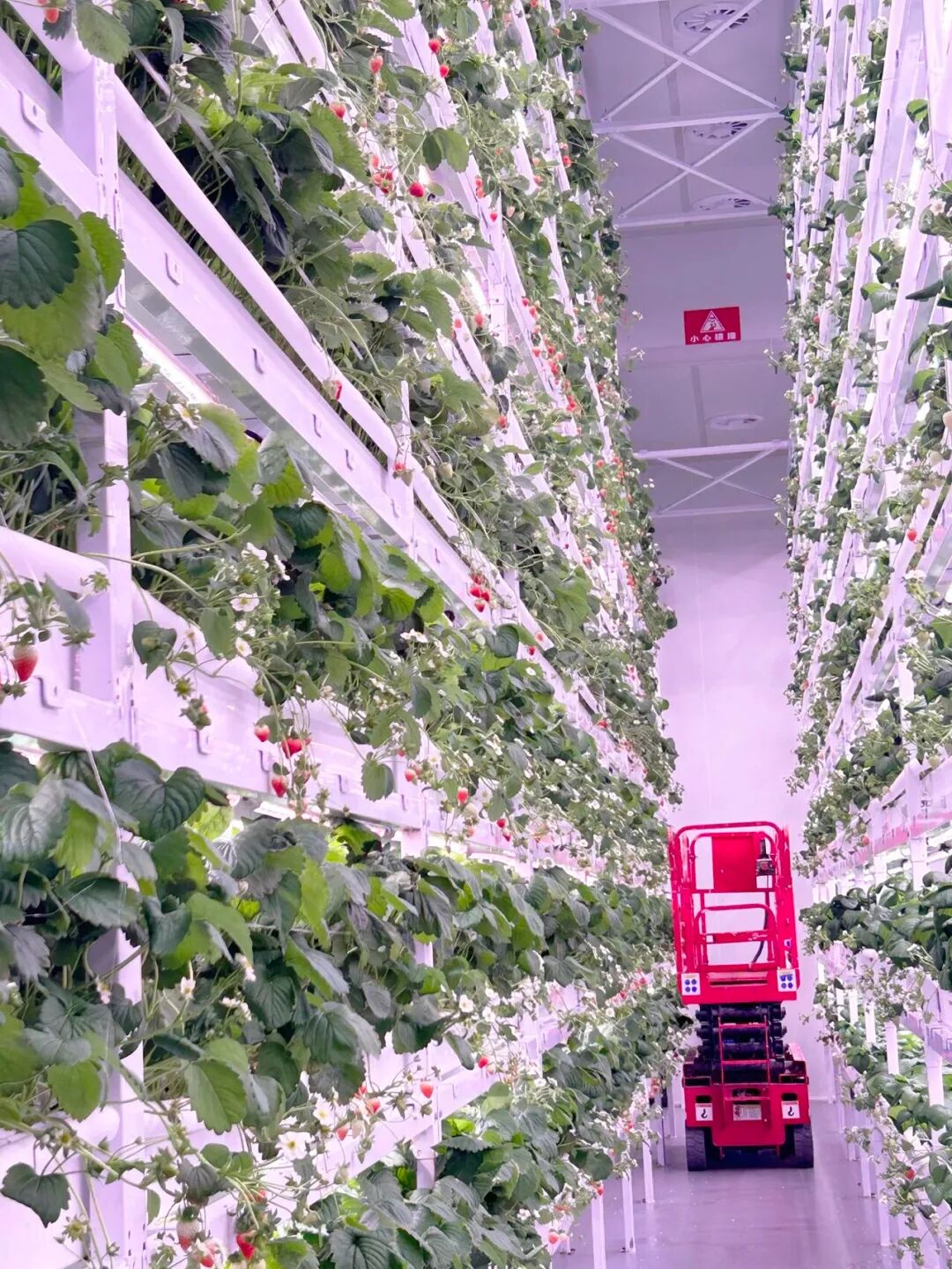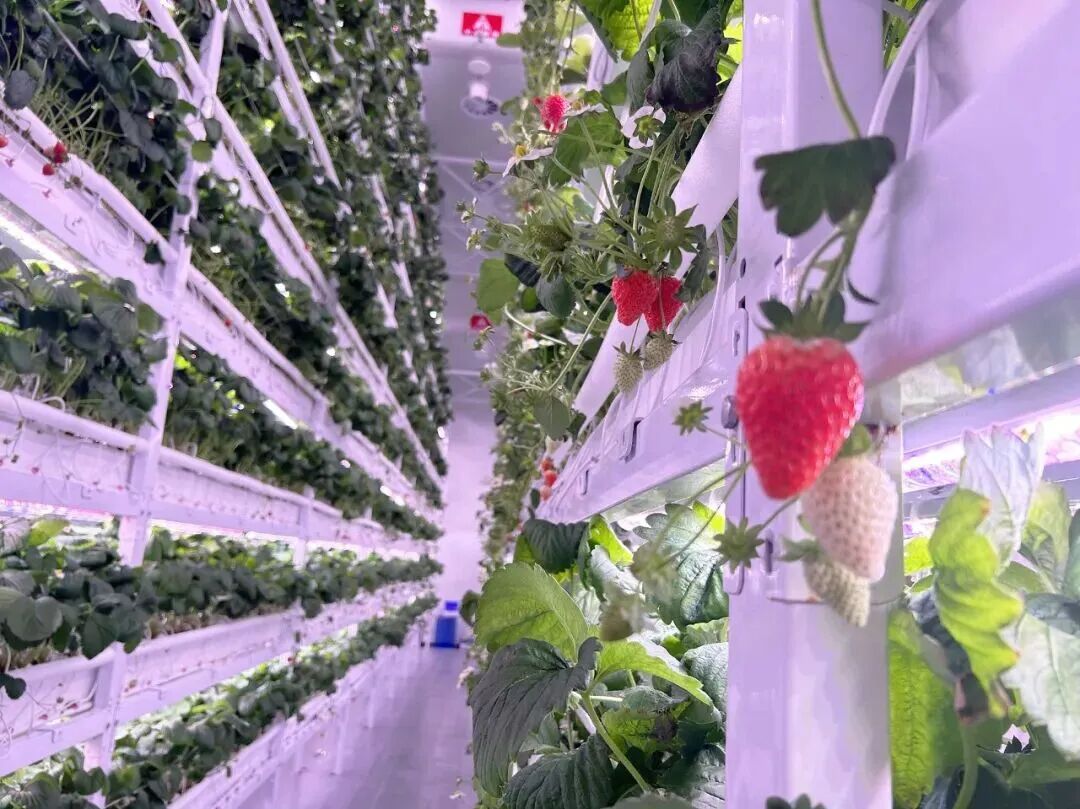 如果说传统大棚藏着田园诗意,中农·超级植物工厂则展现了农业的“未来模样”。在洁净如实验室的车间里,草莓摆脱土壤束缚,住进多层垂直“公寓”,通过人工智能调控光照、水肥,实现365天稳定产出。