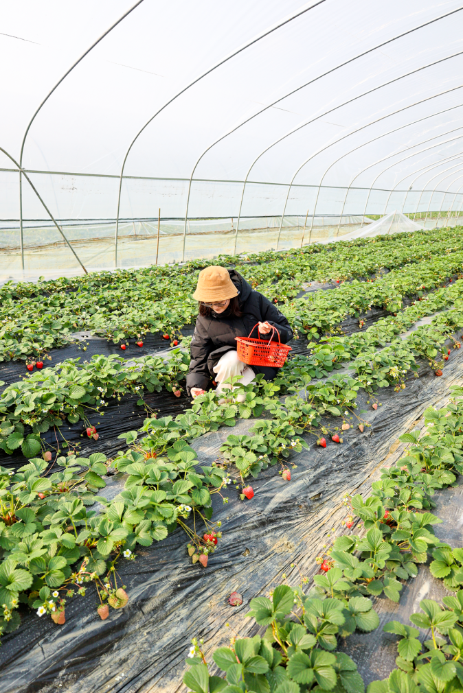 与之相邻的温江欧野草莓采摘园则藏着另一番慢时光。整齐排列的大棚里,白草莓、巧克力草莓、黑珍珠等特色品种肆意生长,游客拨开绿叶便能邂逅“红果藏绿间”的惊喜。“这里的草莓口感清甜,漫步其间也特别治愈。”一位正在采摘的游客说,这里简约自然的环境,让采摘变成了一场亲近自然的放松之旅。