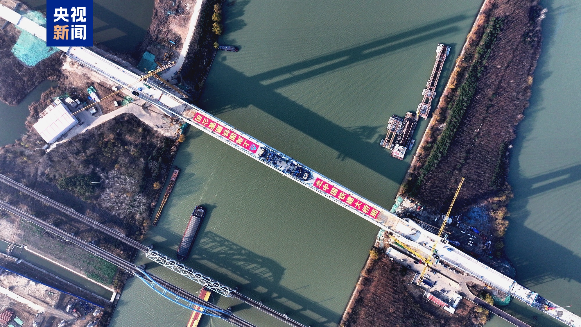 12月19日,沪渝蓉高铁全线重点控制性工程——通泰扬特大桥跨京杭运河桥顺利合龙,为沪渝蓉高铁如期通车奠定关键基础。