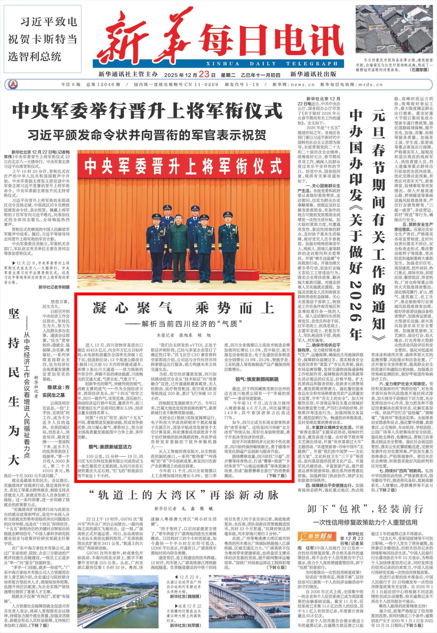 回望“十四五”收官、面向“十五五”开局,着眼塑造发展新动能、形成竞争新优势,四川凝心聚气、乘势而上,努力在全国高质量发展版图中力争上游、多作贡献。