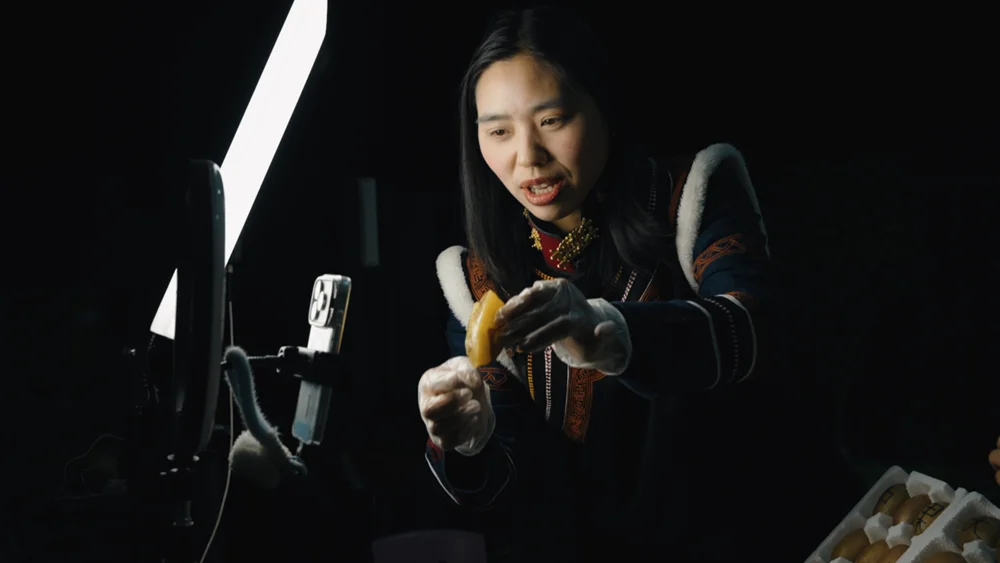 已经是2025年12月,四川甘孜泸定县磨西镇,农民宋华琼架起了手机直播。这是贡嘎山脚下的古镇,四川最高峰位于此,不少人直播着这里的雪山和冰川获得流量,而且有人因直播日照金山已经“红”了好几年。