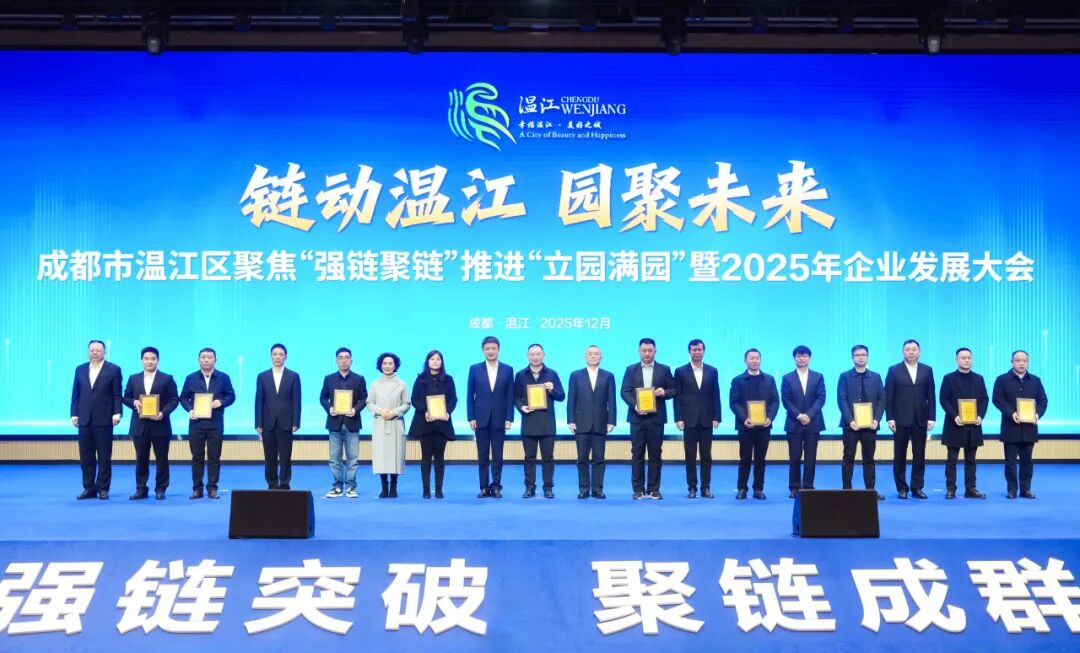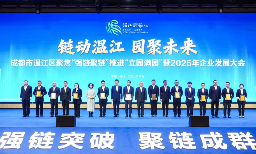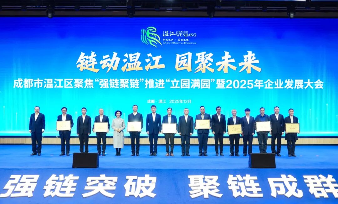 12月26日,成都市温江区聚焦“强链聚链”推进“立园满园”暨2025年企业发展大会召开。300余家企业、金融机构、科研机构、高校院所、产业商协会(联盟)代表如约相聚,共襄企业发展盛举,共话温江高质量发展新篇。