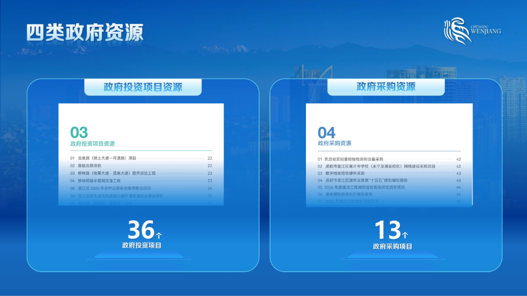 四类政府资源清单集中公开了涵盖产业空间、场景机会、投资项目及政府采购在内的四大类、共66项政府资源。