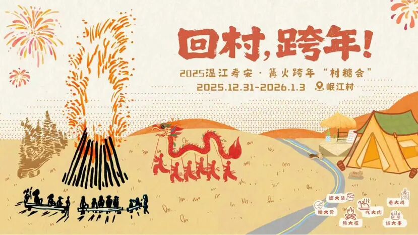 亮点:回村熬大夜、回村逛大集、回村吃大肉、回村睡大觉、回村搞大事、回村看大戏六大“回村”主题活动。包含:以 “柴”为社交货币 ,与有趣的NPC一起沉浸跨年游玩会;“山民集市”;火锅、BBQ、烤全羊、羊肉汤、老汤锅美食;入住“村上村宿”;办理新村民护照、对接岷江村资源;青年茶铺皮影戏班子演出