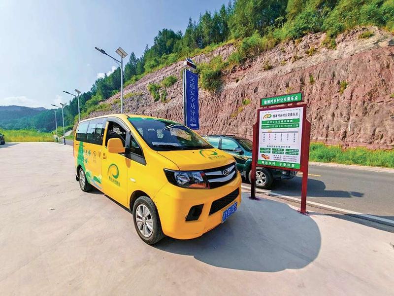 村道路边设置了乡村公交乘车点