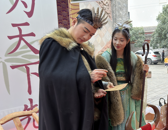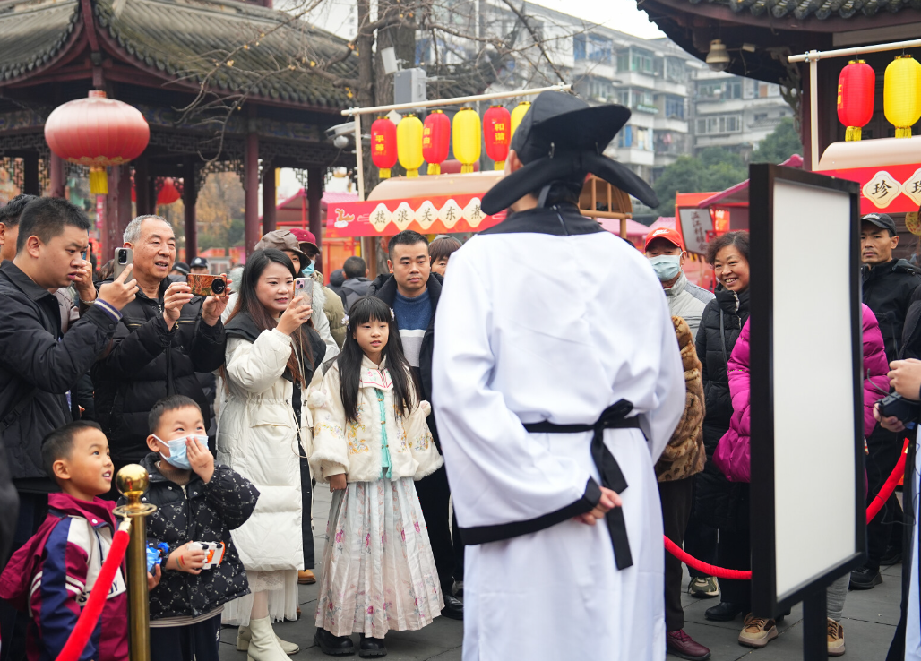 “暗号正确,请前往‘交子务’继续寻找线索……”全国重点网络微短剧《公元1023交子秘笈》在温江首发,互动剧情贯穿全场,由专业演员扮演的“鱼凫王”“阿依朵”“薛老爷”等角色分布于交子务、坊市街、魁星楼、凉亭等各处,与市民游客互动,引导大家破解谜题,推进一场跨越千年的金融秘事。
