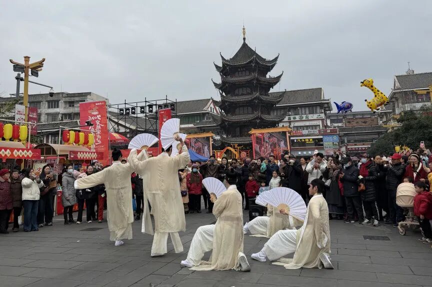 在文庙广场与文庙·印巷文创街区,不少年轻人与NPC们打卡留影,在互动中沉浸感受历史脉搏,人影与古建相映,成为一幅流动的当代“宋词画卷”。