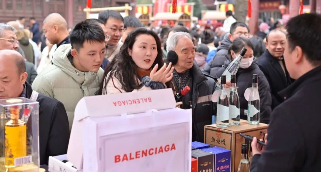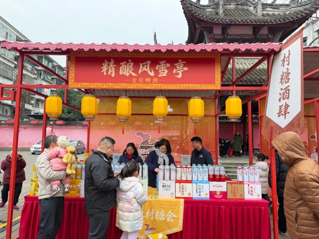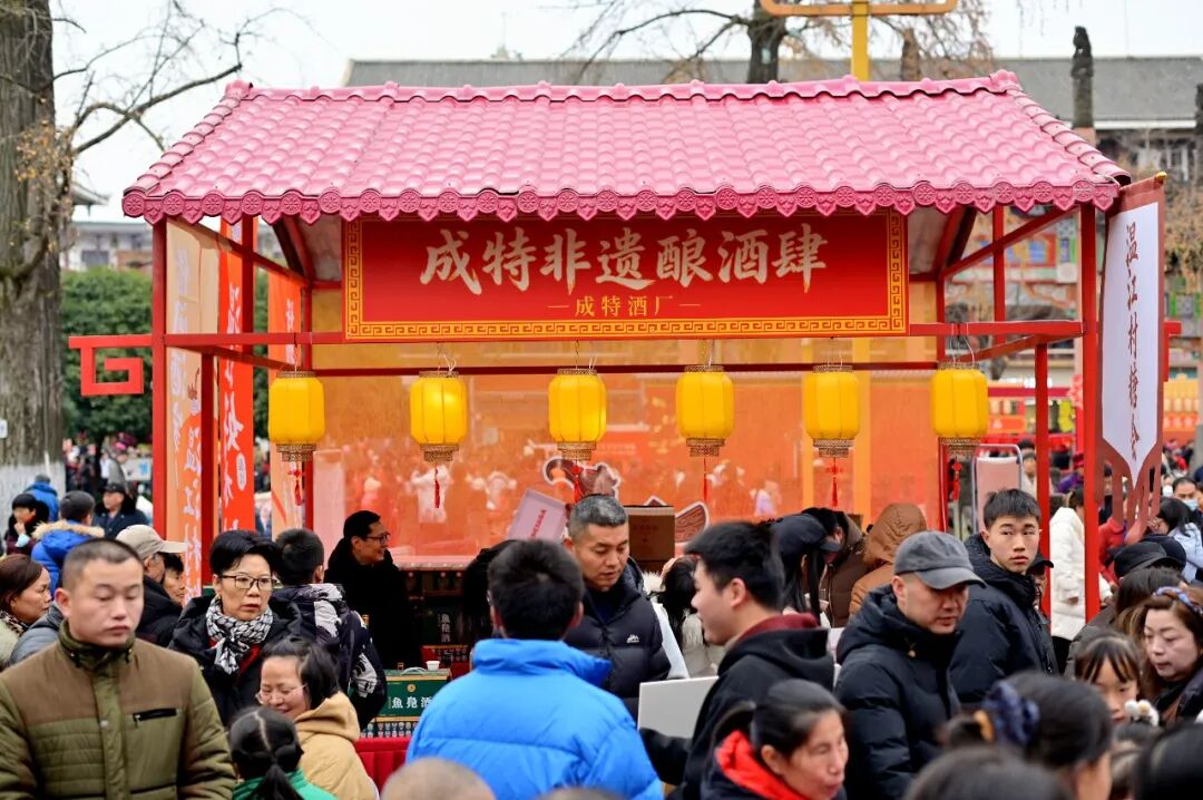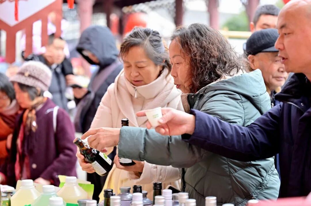 在文庙广场,“鱼凫荐酒·同饮温江酿”温江村糖酒肆汇聚了温江本土酿造的各类特色佳酿,为市民游客提供一站式的品鉴体验和购买平台。不妨将你的“新年第一杯”,盛满这些地道的“温江味道”。