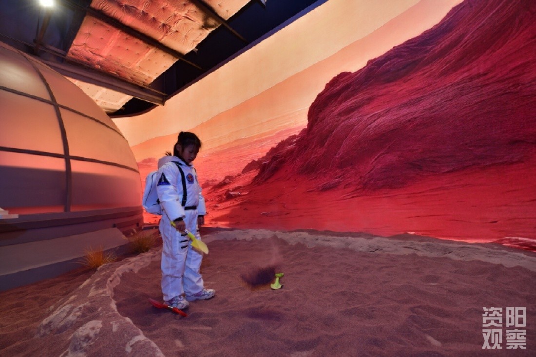 走进资阳艺云数字艺术中心,数字技术让千年文物挣脱时空束缚,鲜活呈现在孩子们眼前。故宫主题展厅内,数字做饭、VR游故宫等趣味体验。火星展区里,失重模拟、AR宇航服试穿等体验,更是引得孩子们现场笑语不断。