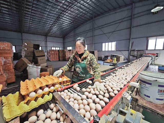 工人分拣、包装鸡蛋。