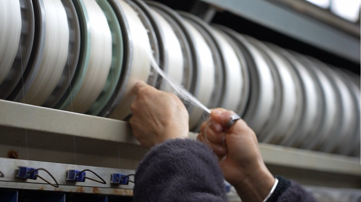 24公里外,四川红旗丝绸有限公司的缫丝车间里,一场更细腻的技术攻坚正在进行。44岁的全国劳动模范凌国青俯身在工作台前,手持一根直径仅66.31缪的生丝,屏息凝神,试图让它穿过153缪的磁眼。这个动作,她已重复了28年。