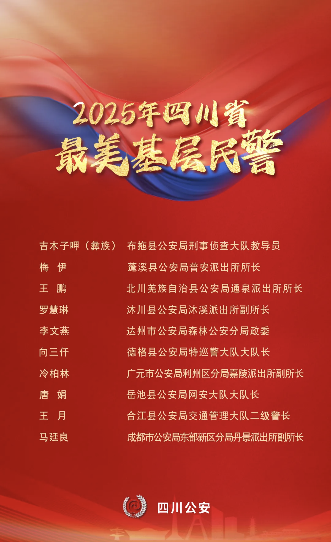 致敬!2025年四川“最美基层民警、最美警属”名单出炉