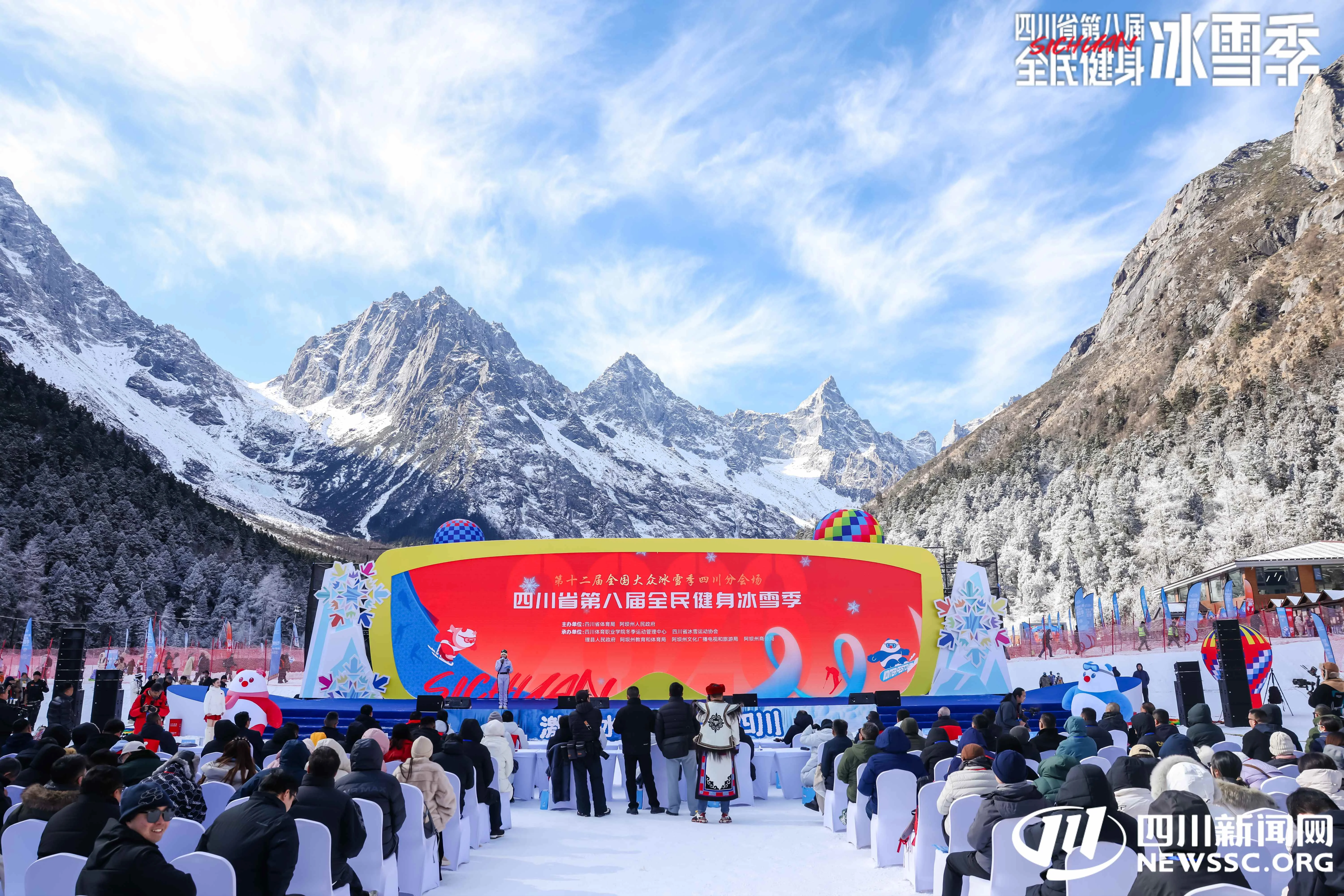 1月5日,当青藏高原东南缘的雪岭披上银装,当藏羌风情与冰雪激情撞个满怀,以“激情冰雪 活力四川”为主题的第十二届全国大众冰雪季(四川分会场)暨四川省第八届全民健身冰雪季,在阿坝州理县毕棚沟月亮湾滑雪场盛大启幕。