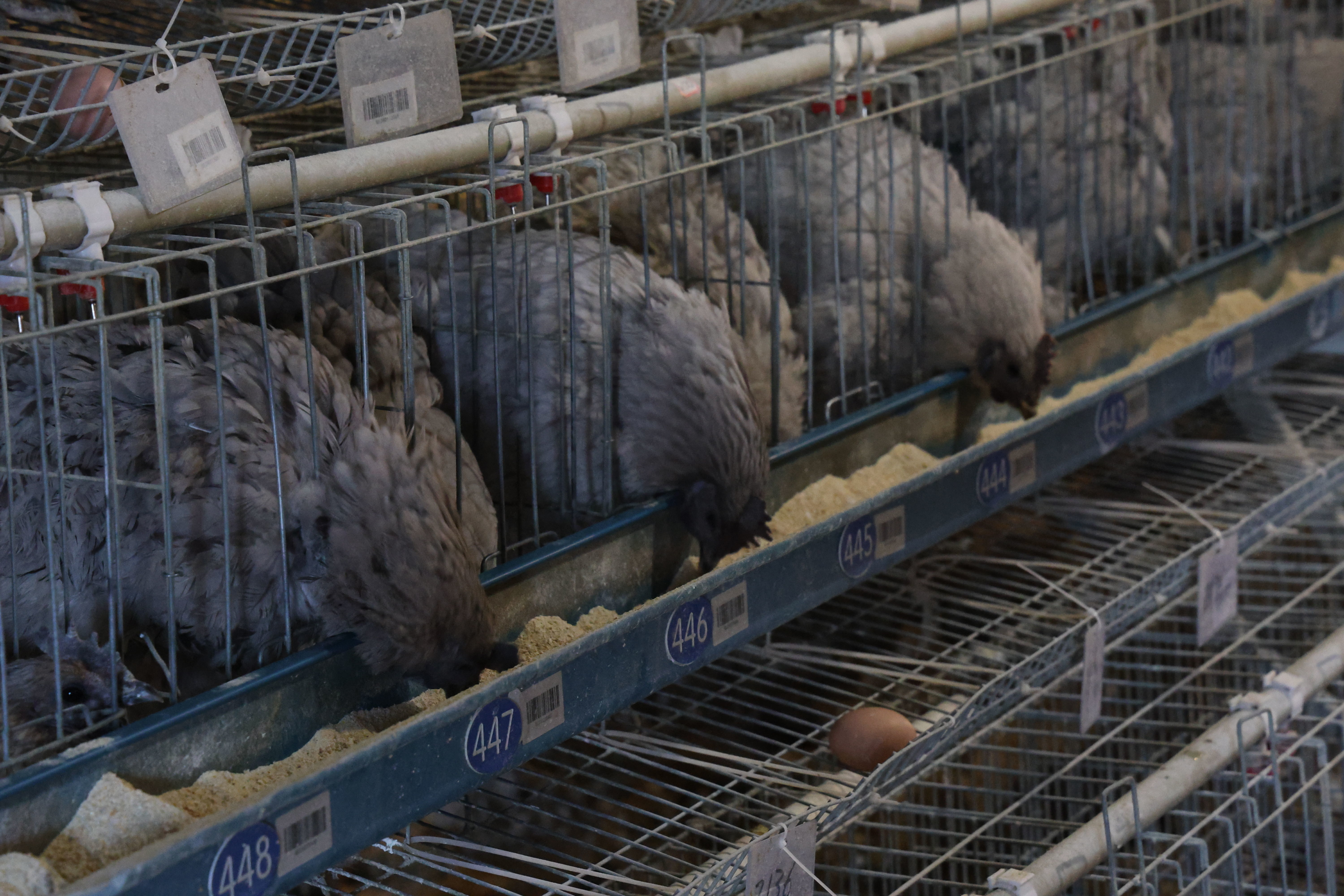 走进育种场,5万余只灰鸡在棚舍啄食,32台孵化机昼夜运转,每台孵化机里整齐码放着19200颗种蛋,工作人员不时查看仪表盘,调控温度。