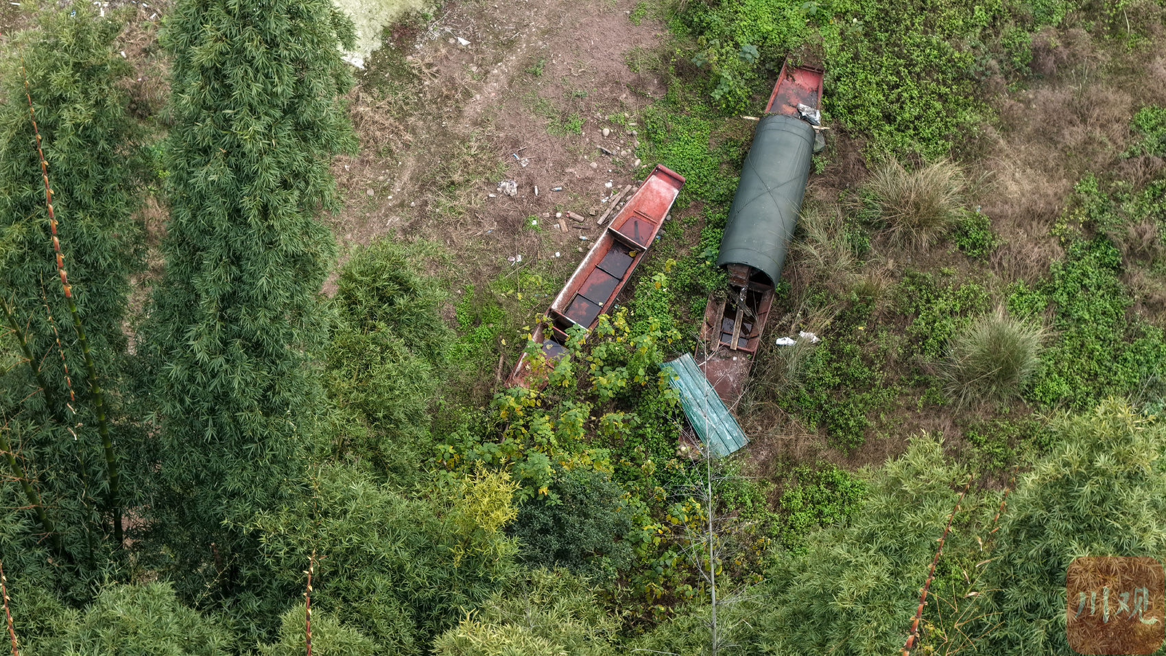 瀛洲阁上破旧的渔船。