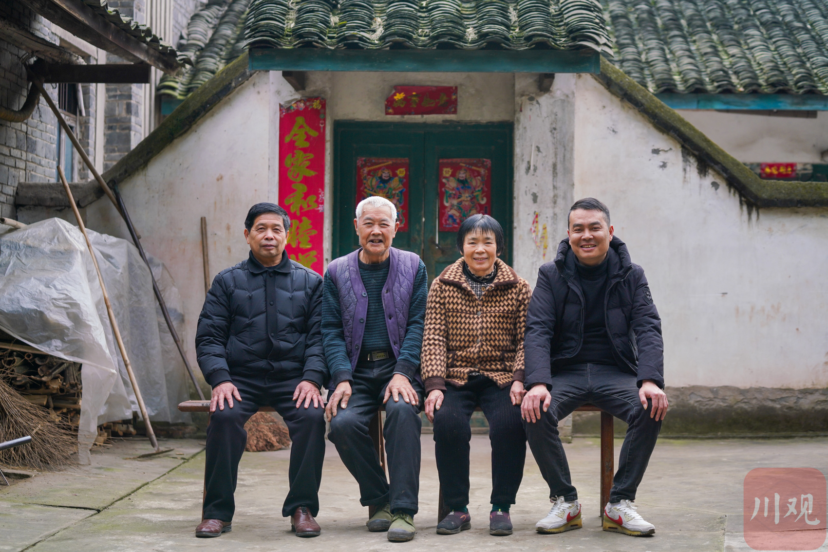 余明文(左2)和侄子余加勇(右1)。