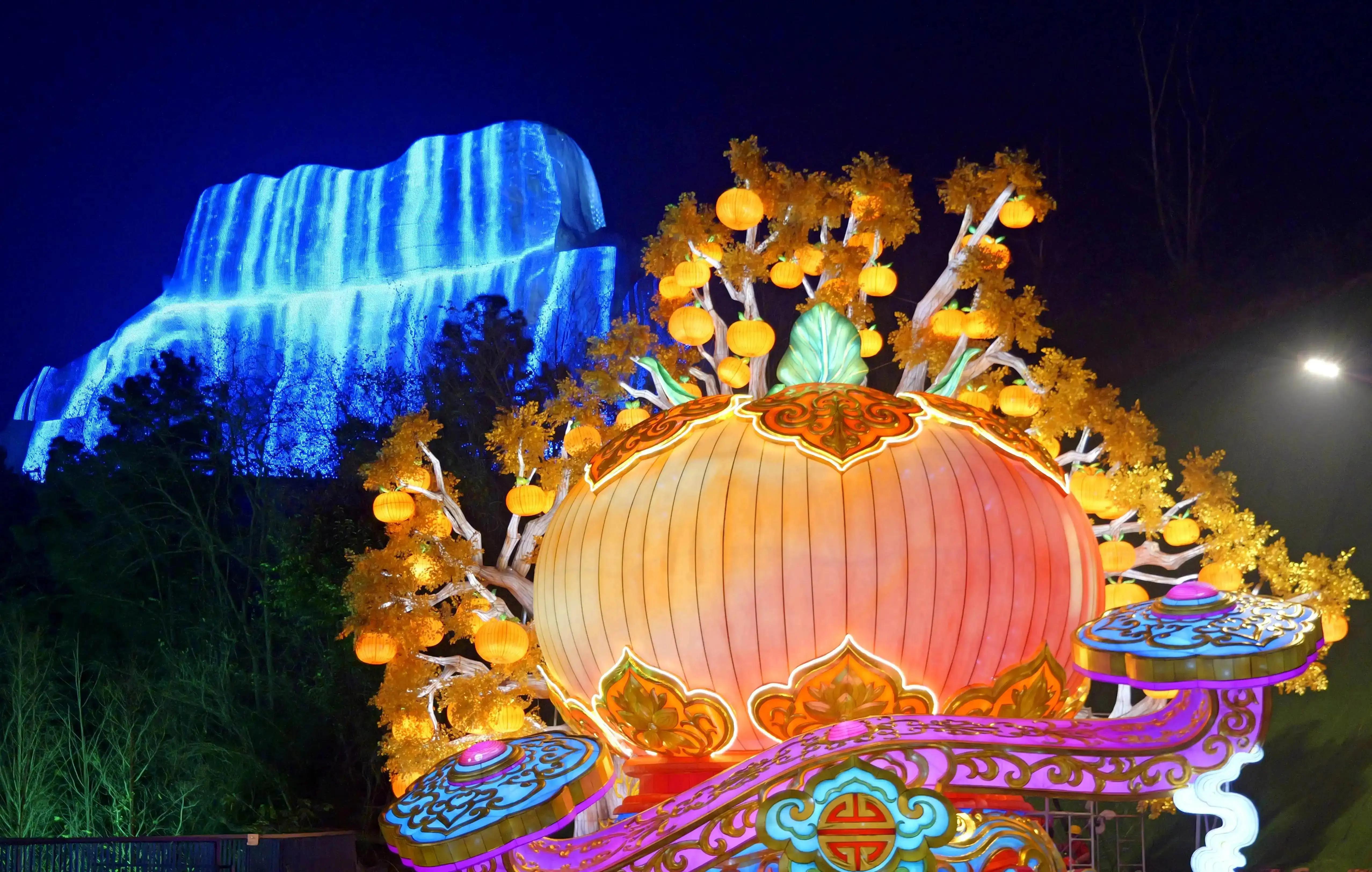 灯会现场设“中国结大道”“福禄广场”“木兰传奇”“匠心非遗”“神奇华夏”等十大板块,以11组大型灯组与200余组中小型灯组,构筑起沉浸式的叙事空间。
