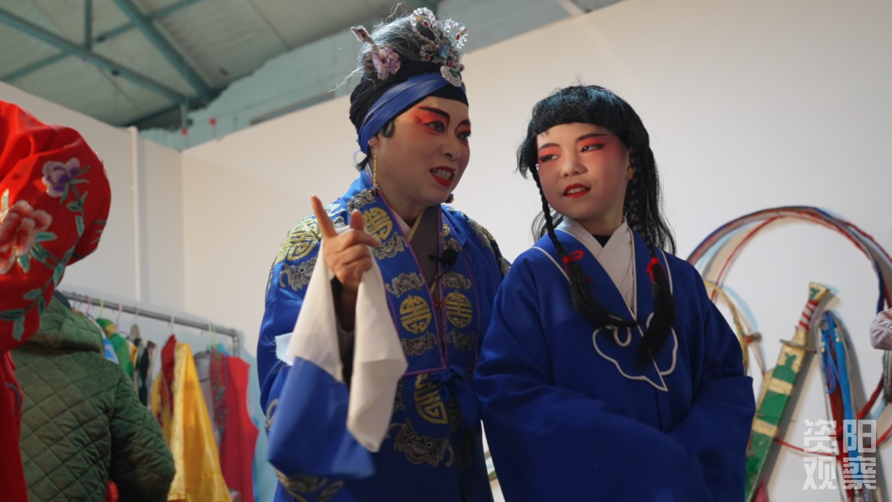 台前好戏刚启幕,后台的坚守早已动人。自下午一点起,一群平均年龄近七十岁的演员便忙着勾脸化妆、走台对戏,指尖流转间尽显对技艺的敬畏。“十几岁学戏,一唱就是四十多年,只要观众爱听,我就一直唱下去。”一位老演员一边整理头冠一边坦言,能让川剧“资阳河”被更多人看见,就是他们坚守的意义。这份跨越近半个世纪的执着,为非遗传承筑牢了根基。