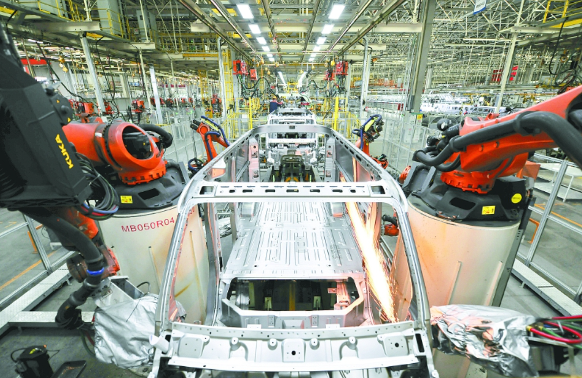 南充某新能源汽车生产基地里的机器人正在工作。余中华 摄