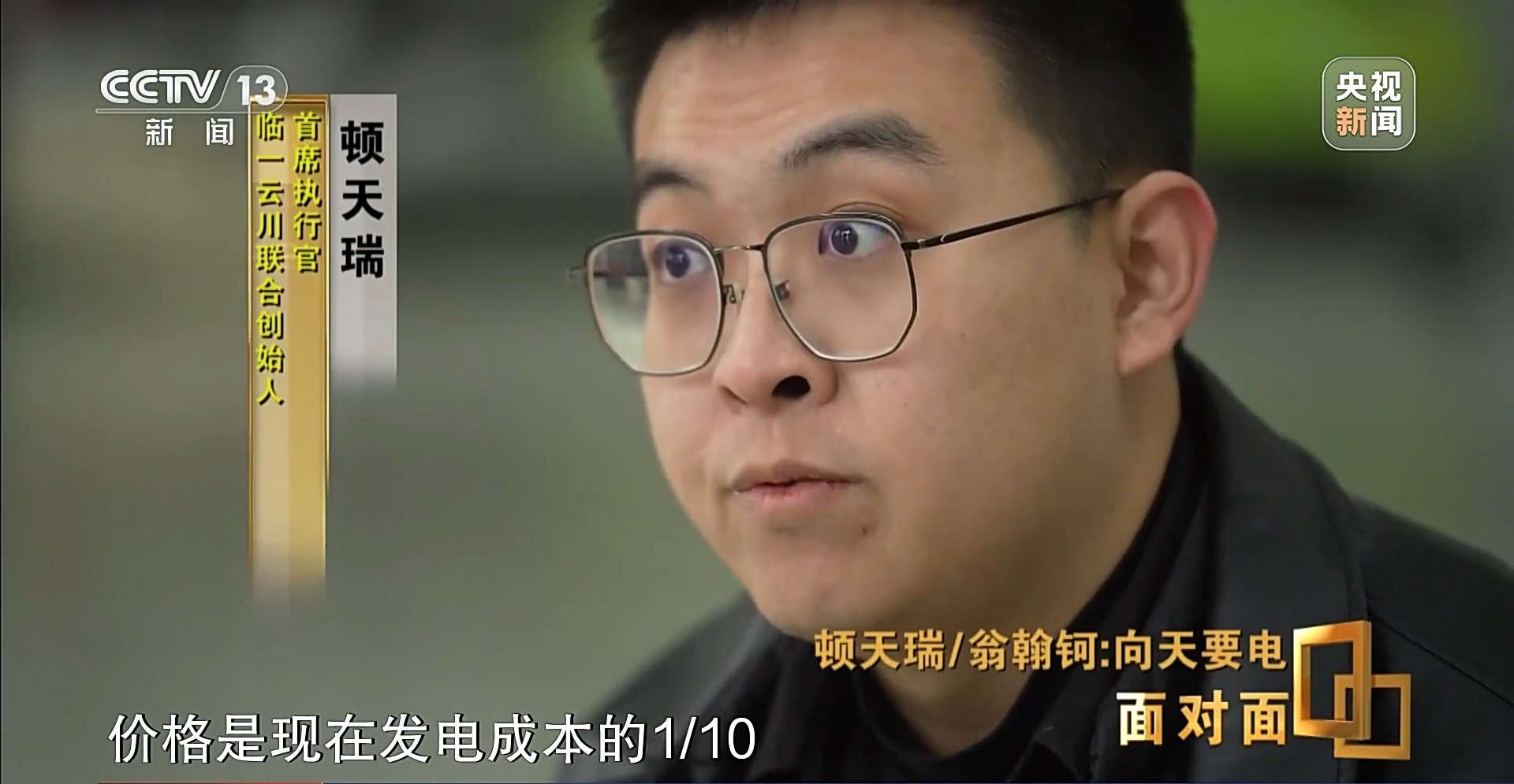 顿天瑞:我要在我30岁之前,也就是说2028年之前完成,我们能够实现度电成本,为当前火电的度电成本1/10,价格是现在发电成本的1/10。