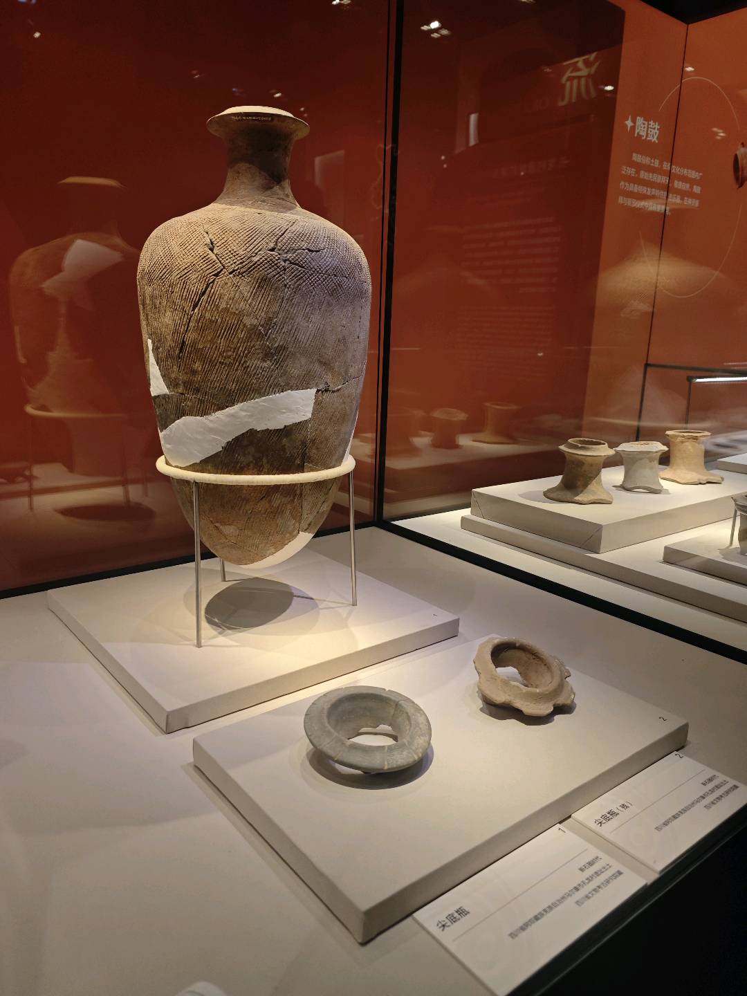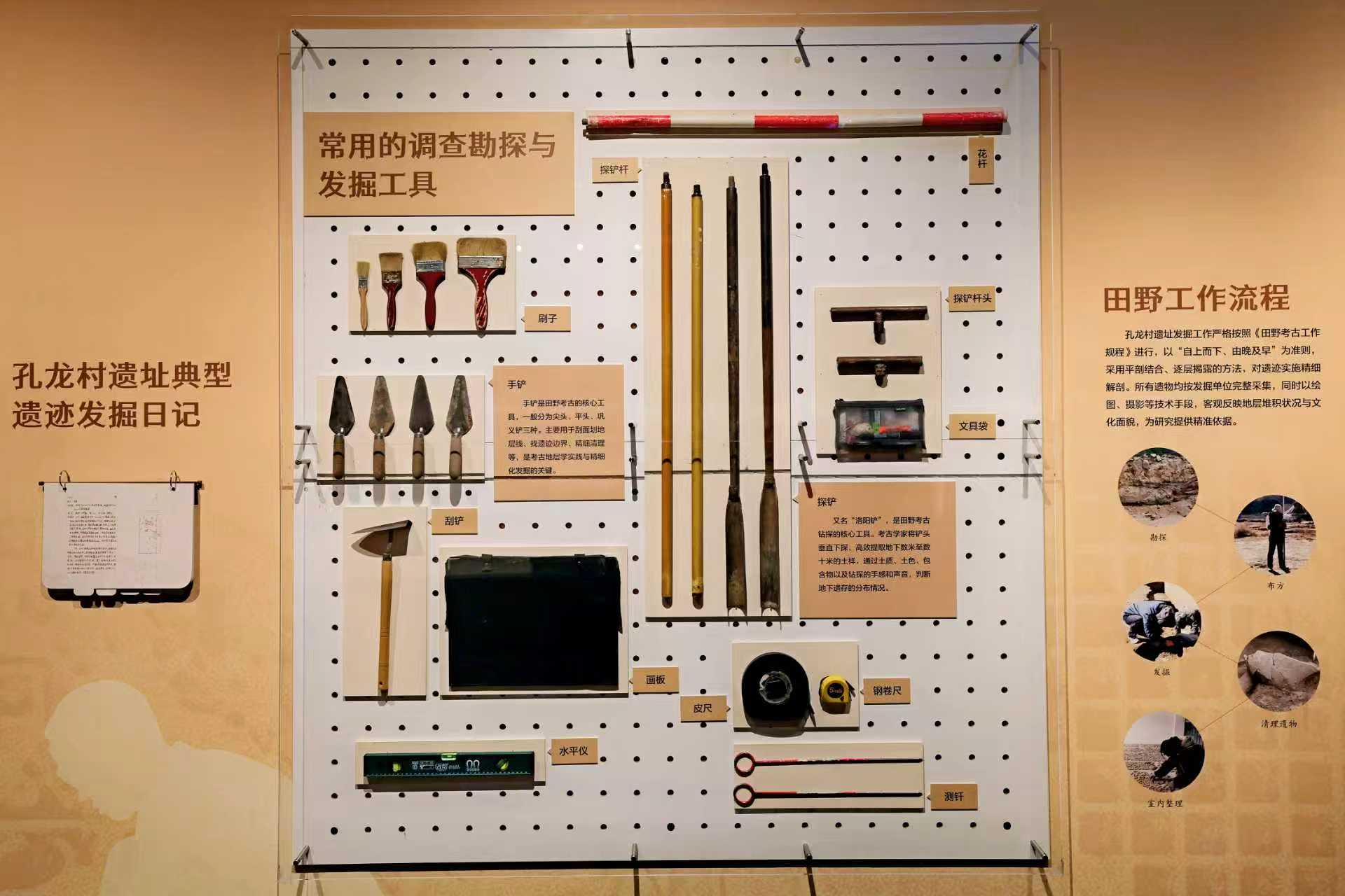 展览以“寻迹”“初识”“源流”为脉络展开。“寻迹”部分如同导览,通过呈现考古工具、发掘记录与科学测年数据,引导观众理解考古学家如何从泥土中辨识历史,并将遗址年代精准锚定在五千多年前。
