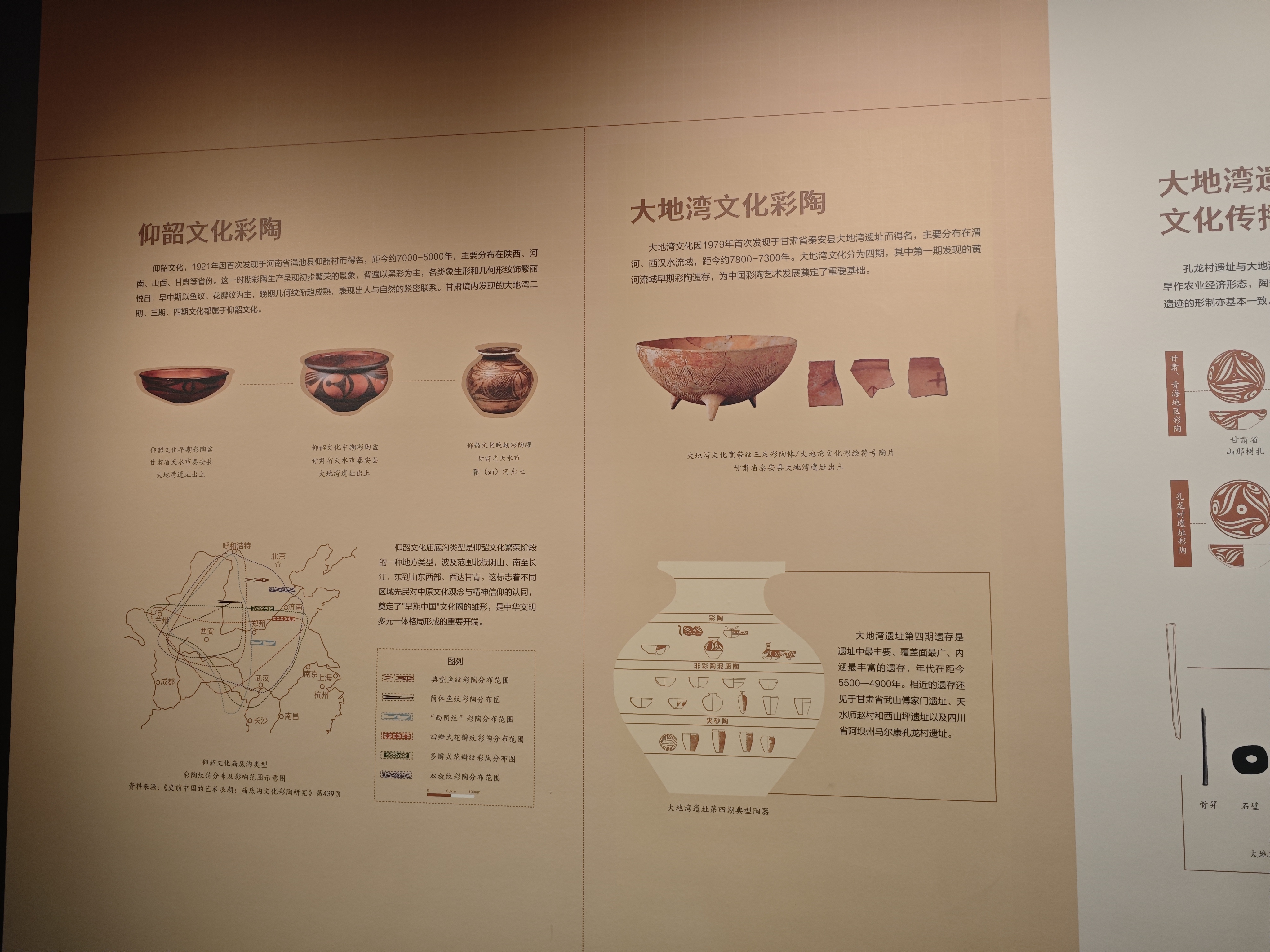 展览通过清晰的文物对比揭示了一个关键发现:孔龙村遗址出土的彩陶器形与纹饰风格,与黄河上游甘肃地区的仰韶文化中晚期遗存呈现出明显的亲缘关系。这一实证将一条跨越千山万水的史前文化互动通道铺陈在观众眼前。
