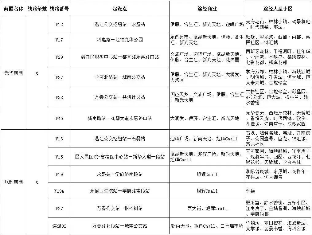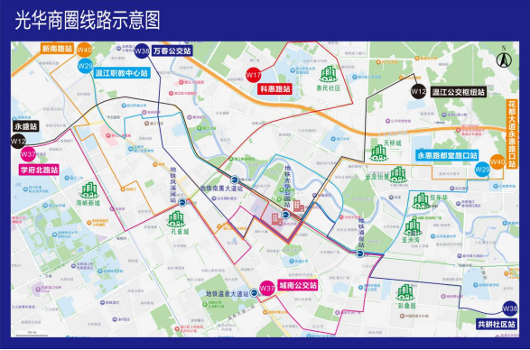优化光华商圈购物公交6条,涉及W17、W29、W12、W38、W40、W37;