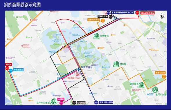 优化旭辉商圈购物公交6条,涉及W13、W19、W19A、巡游02、W15、W27。