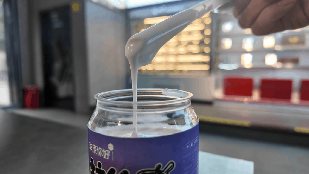 此外,在经典菌株之上,拉丝果酱酸奶还特别添加专属产黏拉丝菌种,通过数小时低温慢发酵工艺,让酸奶自然形成绵密的黏多糖结构,无需添加任何胶体,就能造就如藕丝般柔韧绵长的拉丝效果,实现“一拉三尺长”。同时在省食研院的技术赋能下,品牌构建了标准化发酵体系,精准调控温度、时间与菌种配比,既保留了内蒙古传统酸奶的醇厚底蕴,又让手工发酵更加稳定。