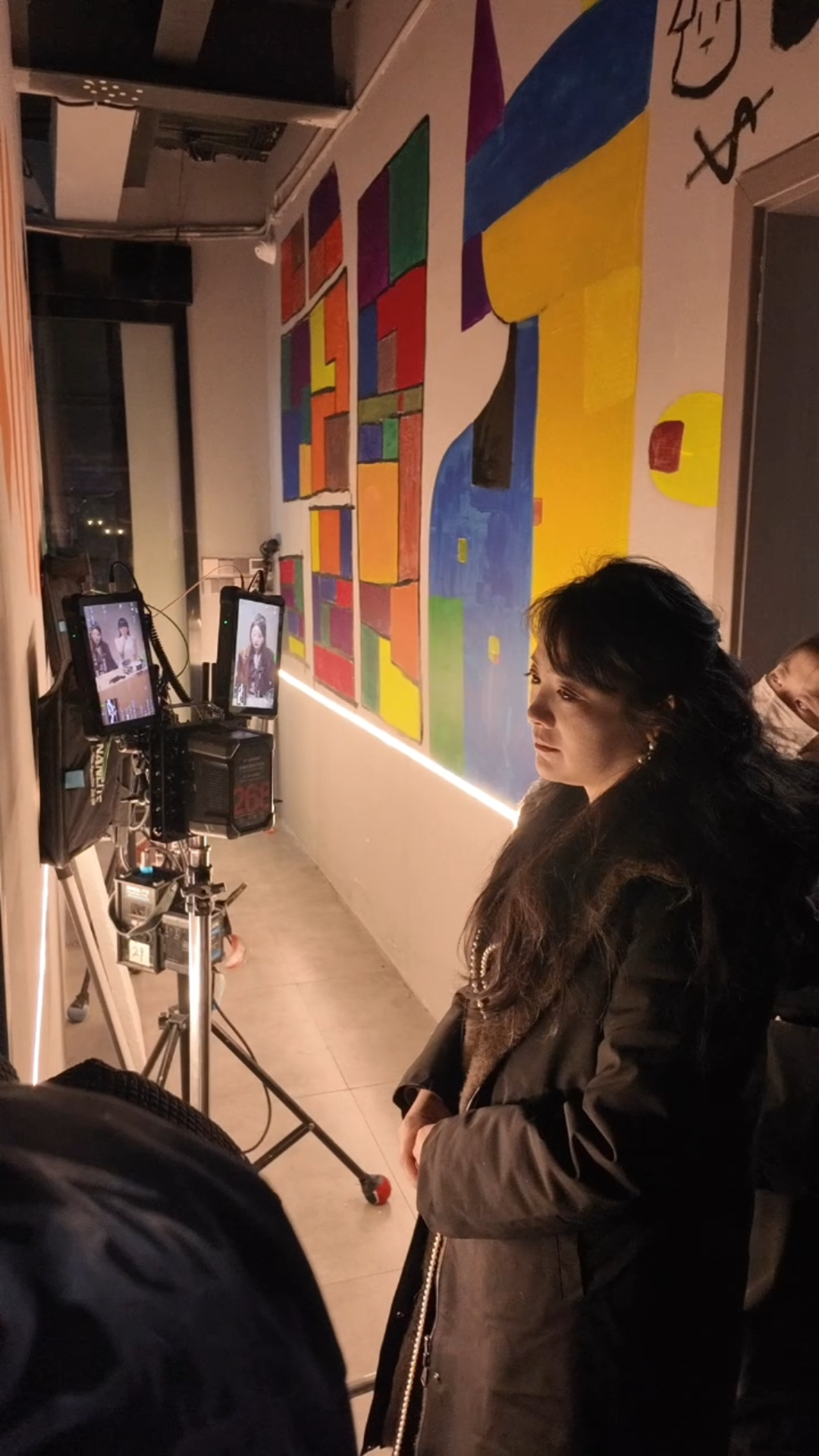 2026年1月,阿娟在短剧剧组跟工作人员交流