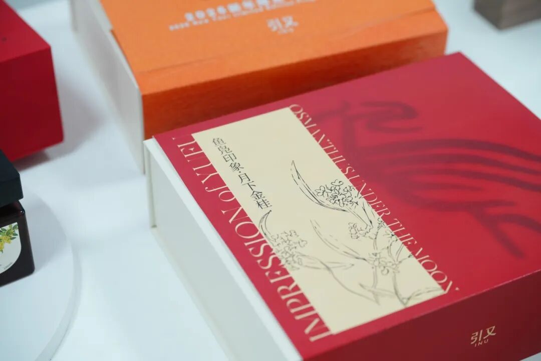 来自成都香分生物科技有限公司的“鱼凫印象”礼盒,以“中国红”为主色调,搭配鱼凫文化图腾烫金细节,香调上复刻岷江村桂花盛放的场景,配以藤条香薰、蜡烛,温暖而馥郁,仿佛步入一场静谧而持续的桂花雨,特别吸睛。